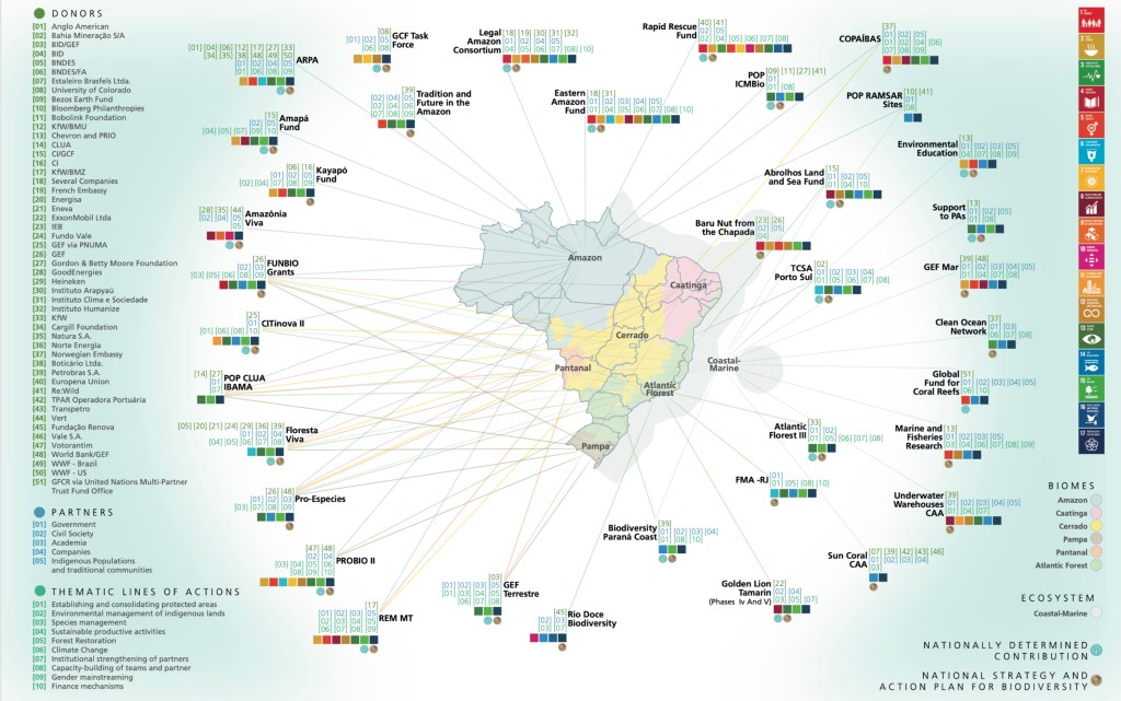 Within Brazil, certain organisations act as key intermediaries, such as the Brazilian Biodiversity Fund (FUNBIO), sitting at the centre of these financial flows.