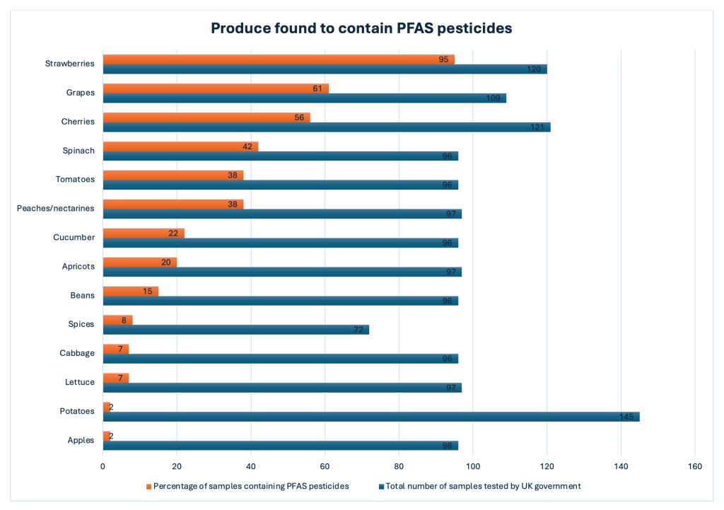 PAN UK’s discoveries align with recent studies indicating that traces of 31 distinct PFAS pesticides were identified in European fruit and vegetables from 2011 to 2021.
